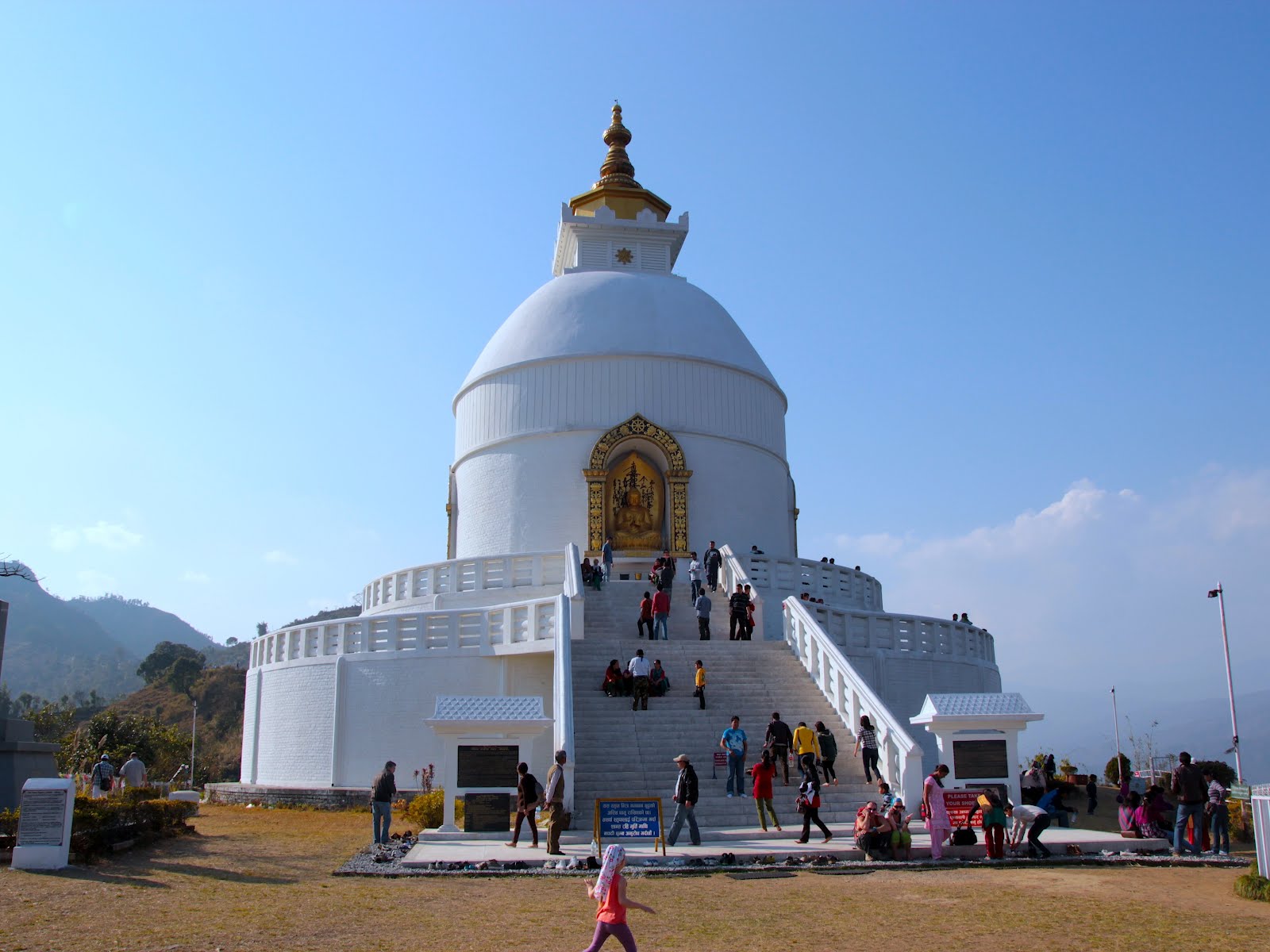 - World Peace Pagoda Opened in 1999 atop a hill just south of Phewa Tal, the Stupa is the first Peace Pagoda to be constructed in Nepal and offers great views of the Annapurna Mountains, including Fishtail, Dhaulagiri, Annapurna South, and Annapurna III. This is a great place to watch the sunrise or sunset over Pokhara. The easiest way to get there is to take a taxi to the base of the Peace Pagoda (NPR1000 return, including waiting). If you want to go on foot, you must first get to the southern side of Phewa Tal, either by walking around the lake or rowing across the lake. Then take a very steep hike (no switchbacks!) through the forest (watch out for leeches during the monsoon) or from the road that passes Devi's Fall, turning right at the end of Chhorepatan.