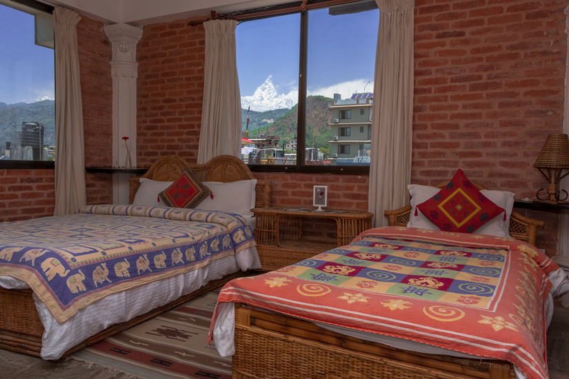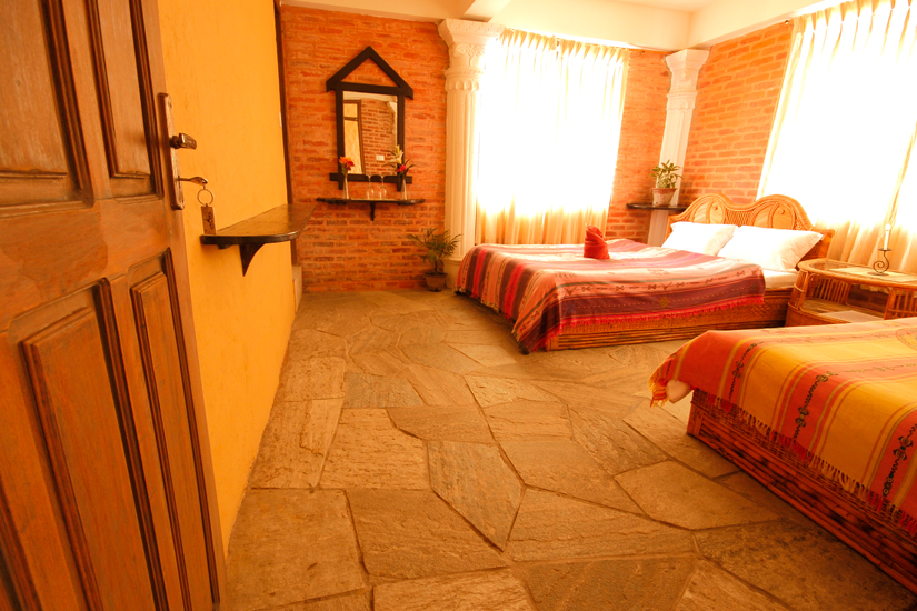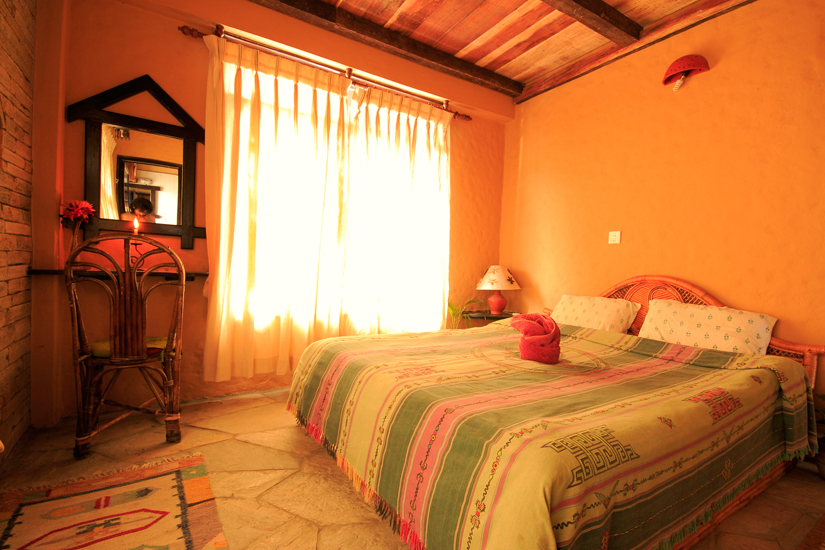 Warm and cozy rooms, carpeted floors,decorated with Nepalese artifacts and own western style bathroom. Two double beds per room.