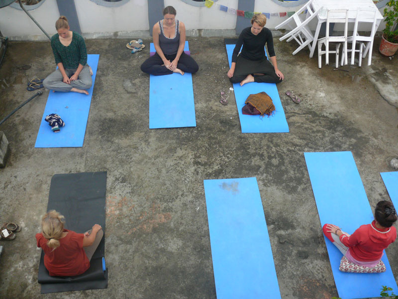 Rishi Poudel, owner of Peace Eye Guest House Invites all guest to join his free morning Yoga class on the rooftop overlooking the splendid Annapurna Mountain Range.
