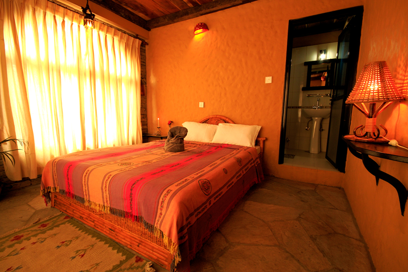 Warm and cozy rooms, carpeted floors,decorated with Nepalese artifacts and own western style bathroom. Two double beds per room.